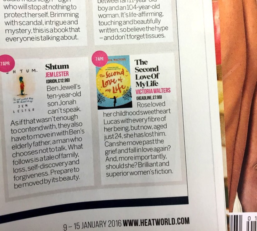 2016 started on a really high note as The Second Love Of My Life was featured in Heat magazine as one of the books of the year to look out for. To say I was over the moon about this is an understatement. There’s my little book hanging out in Heat: