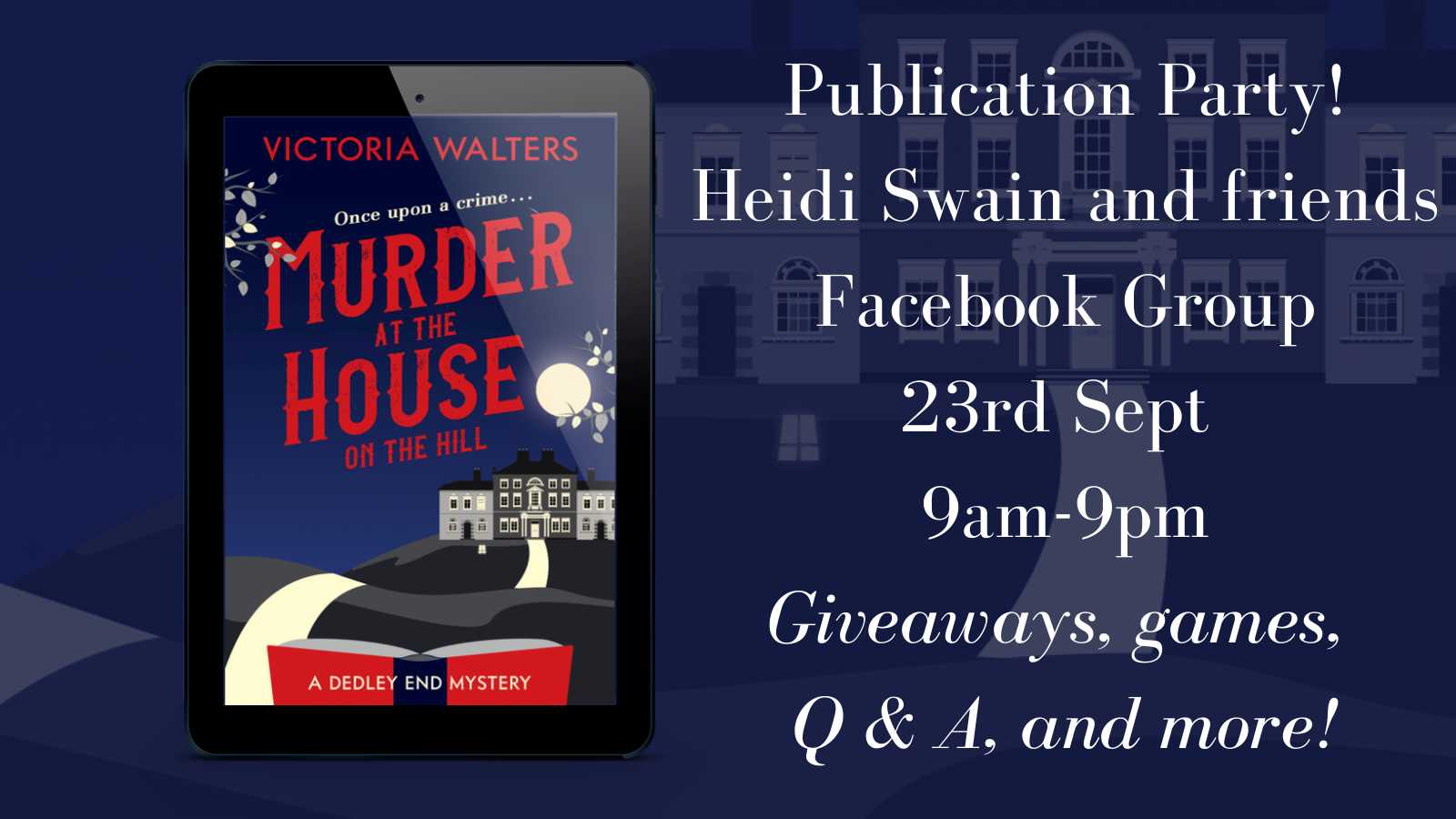 The lovely author Heidi Swain is throwing a publication party in her Facebook group for Murder at the House on the Hill and I’d love you to come! ![]()